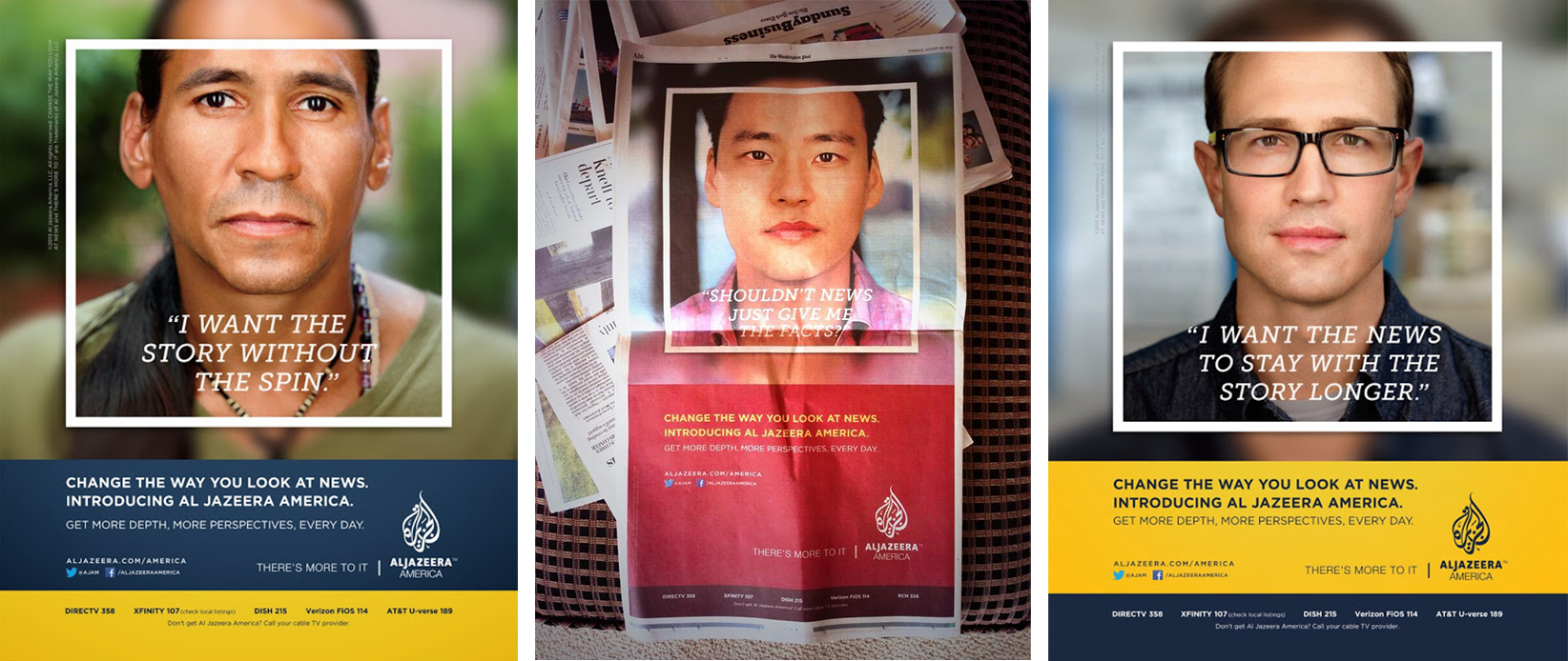 After immersing ourselves in the brand’s philosophy and surveying the already crowded cable news space, we We wrote, designed, and art directed a 360 campaign that would ignore the false assumptions, avoid disparaging the competition, and showcase the new channel’s point of difference. We also created documentary-like commercials that I directed featuring portraits of real American news consumers whose lives had been touched by major news events, as well as an all-text approach, running in tandem, which contrasted the current state of TV news with the Al Jazeera America promise.